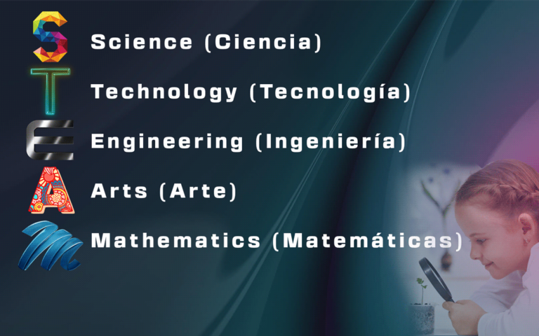 STEAM es un acrónimo en inglés en donde la S es por Ciencia (Science), la T por Tecnología (Technology), la E por Ingeniería (Engineering), la A por Arte (Arts) y la M por Matemáticas (Mathematics).